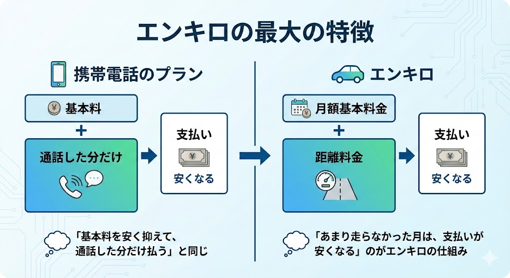 「あまり走らなかった月は、支払いが安くなる」のがエンキロの仕組みです。