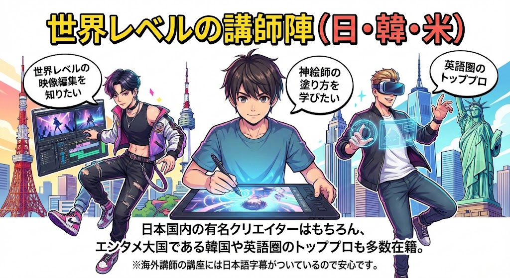 「あの神絵師の塗り方を学びたい」「世界レベルの映像編集を知りたい」という願いが叶います。