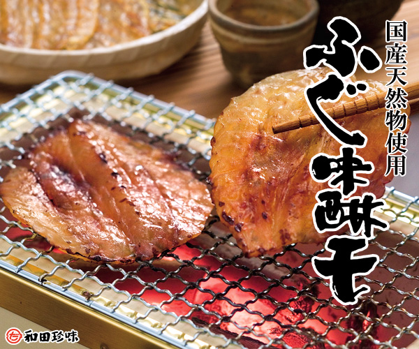 - 和田珍味の看板商品。軽く炙ると、甘辛い香りとふぐの上品な旨味が溢れ出します。水産庁長官賞受賞の逸品。