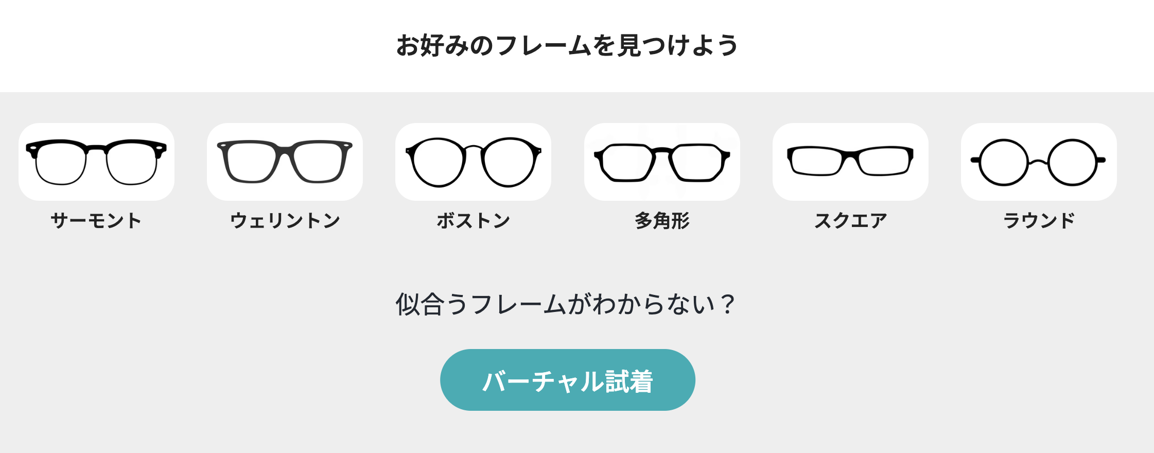 バーチャル試着で「スクエア」や「ウェリントン」をチェック。