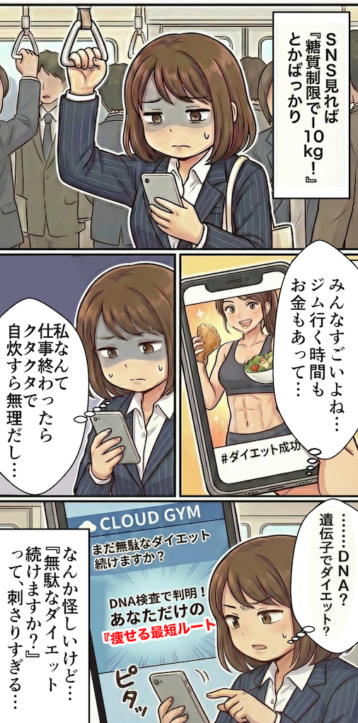 98%が知らない!「糖質制限」で痩せない原因はDNAにあった?科学で判明する衝撃の事実。オンラインパーソナルトレーニング×遺伝子検査で最後のダイエット!