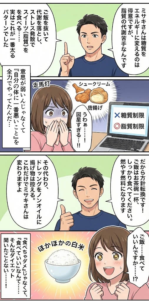 「糖質制限が良いと聞いたけど痩せない…」それはあなたの体質に合っていないからかもしれません。